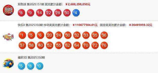 【七星彩+快3彩票一站式平台】(访问:363050.com 领取888U)权威玩法解析、实时开奖数据更新,精选高返奖率正规平台。注册即送购彩金,独家分析工具助您精准投注!168彩票开奖网是彩种最全、开奖最快的专业彩票开奖网站。北京PK10、时时彩、极速赛车、双色球、大乐透、快三、幸运飞艇、双色球预测软件、彩票平台推荐一应俱全!【开奖回顾】12月30日,开出的奖项有福彩的25151期双色球,253350期福彩3D,第25350期快乐8,以及体彩的25151期七星彩、25350期排列三/排列五。