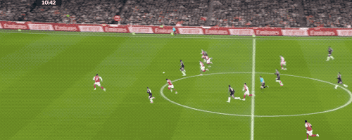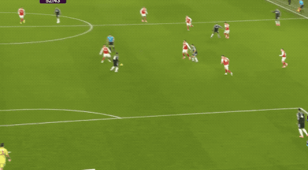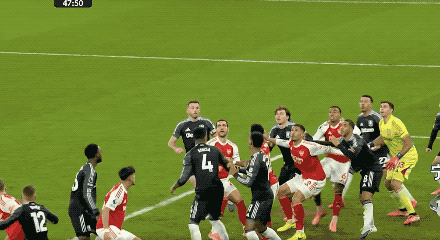 第48分钟,萨卡开出角球,加布里埃尔在马丁内斯的腋下将球打进,这也是阿森纳本场获得的第一个角球。