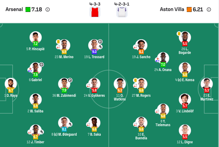 维拉首发:23-马丁内斯、26-博加德、4-孔萨、3-林德洛夫、12-迪涅、24-奥纳纳(46’7-麦金)、8-蒂莱曼斯(81’20-贾马尔丁·吉莫)、19-桑乔(61’17-马伦)、27-罗杰斯(81’53-乔治·海明斯)、10-布恩迪亚(61’16-安德烈斯·加西亚)、11-沃特金斯。